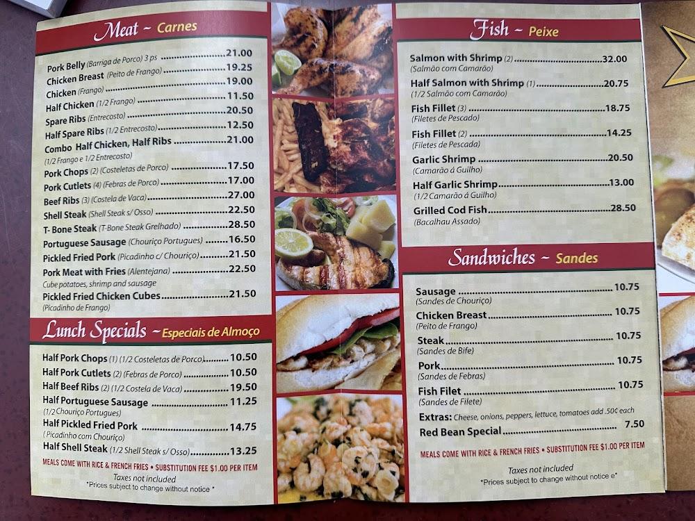 The menu at Estrela Da Serra BBQ features a delightful array of Portuguese dishes. A range of grilled meats takes center stage, including chicken, ribs, and T-bone steak. Flavorful options like pickled fried chicken and shell steak arrive with sides of rice and fresh potatoes. The seafood section offers garlic shrimp and grilled fish, perfect for those craving something lighter. Don't overlook the lunch specials; they provide great value for hearty meals. Complement your choice with crispy fries or rice, both crowd favorites. Desserts like homemade flan and cheesecake entice diners to indulge after their meal. The options are plentiful, making it easy to find something everyone will enjoy. Food lovers visiting here can expect authentic flavors and generous portions.